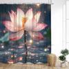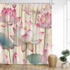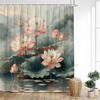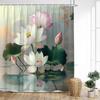 Lotusblommor Duschdraperi Naturliga Gröna Blad Växt Floral Kinesisk Stil Badgardiner Tyg Hem Badrumsinredning med Krokar