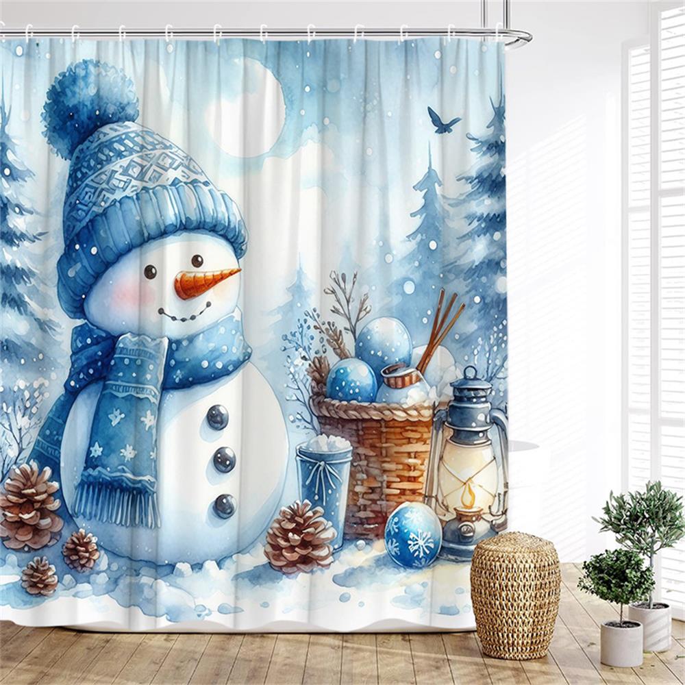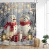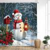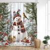 Julduschdraperier Söt Snögubbe Fåglar Ekorre Vinterskog Röda Bär Nyår Jul Badrumsgardindekor Med Krokar