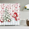 Christmas Shower Curtain Winter Snowman Snowflake Christmas Tree Red Truck Bell Red Bird Colorful Christmas Ball Bathroom Decor