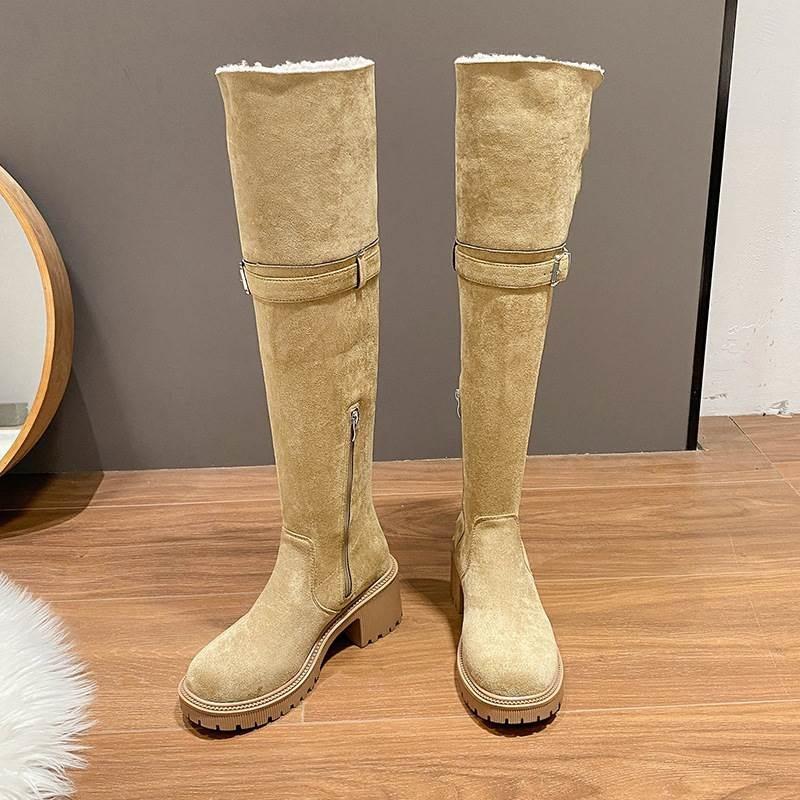 Small snow boots women's 2025 autumn and winter boots with fleece inner height-increasing tube over the knee warm long boots
