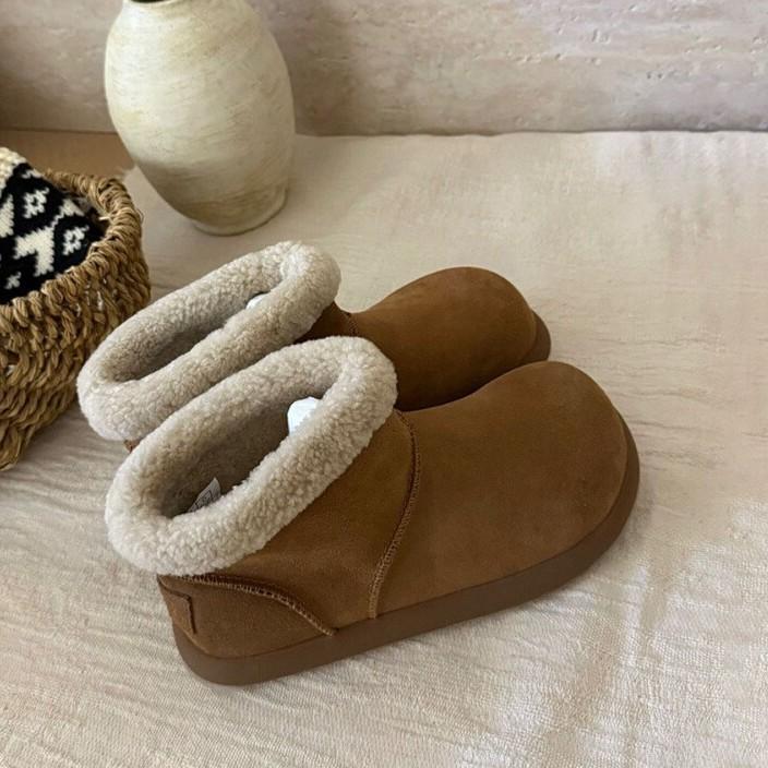 Nappaversion~ retro rund tå fulsöta korta stövlar dam sammet lågskurna snöstövlar varma stora bomullsskor tjocksulade fluffiga stövlar