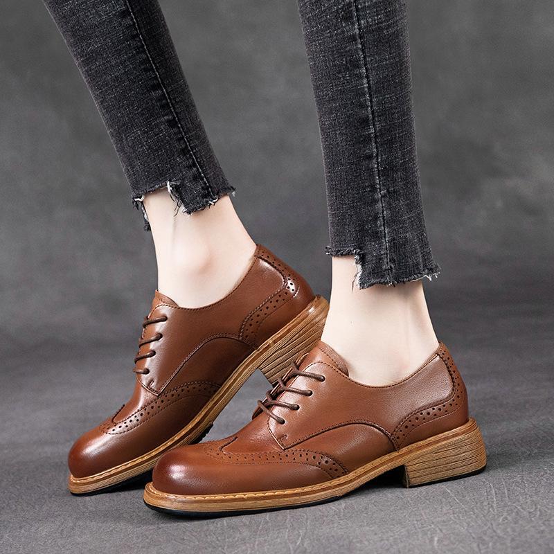 Det första lagret av mockasiner i koskinn för damer 2025 vår och höst nya brittisk stil Brock retro pendlingsskor i läder små läderskor för damer