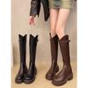 Långa stövlar 2025 nya höst tunna ridstövlar liten man hög tjock sula över knäet retro tvåvägsstövlar dam