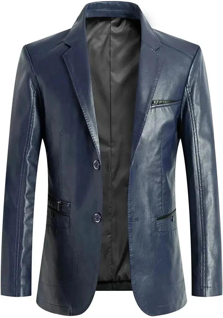 Handgjord Formell Kontorsklädsel Blå Herrkavaj Äkta Lammhud Lädertyg Snygg