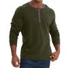 Men's Henley-style round-neck long-sleeved T-shirt Men's loose-fitting sports top