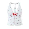 Fairy Princess French Style Girly Style Cherry Small Floral Bows Sexy Open Back V-neck Halter Small Slip Top