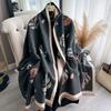 Double-Sided Flower Print Imitation Cashmere Scarf Femininity Thickened High-End Warm Office Shawl Cape
