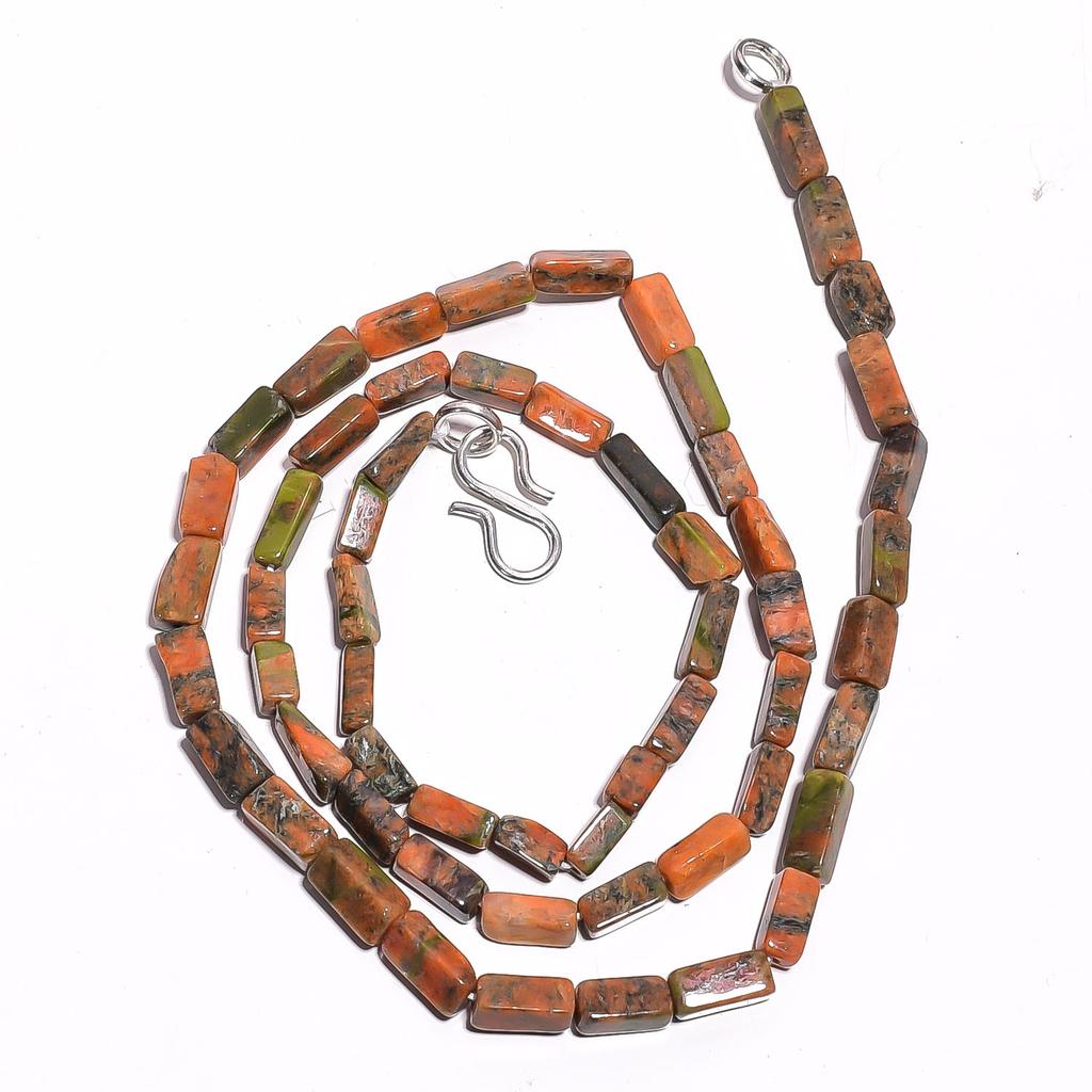 Natural Unakite Gemstone Square Tube Smooth Beads Necklace 17" UB-3577 UB-3577