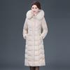 Vinter medellång dunjacka över knäet, plusstorlek, förtjockad kappa för medelålders och äldre mödrar