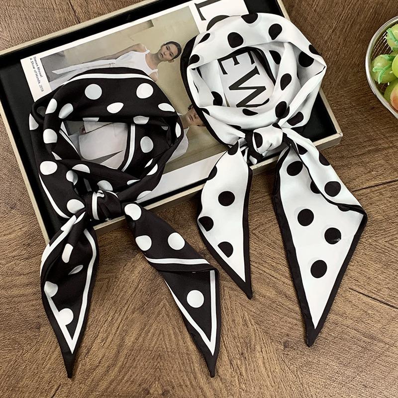 Polka dot silk scarf, long strip, high-end and versatile decorative scarf, new imitation silk scarf, headscarf, headband, bag strap.