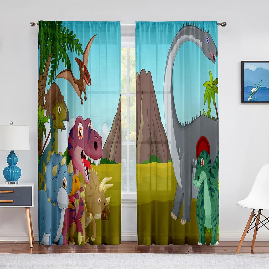 Dinosaurie Tecknad Dino Djur Tyll Skira Fönstergardiner för Vardagsrum Barn Pojkar Sovrum Modern Tyll Voile Gardin Dekoration