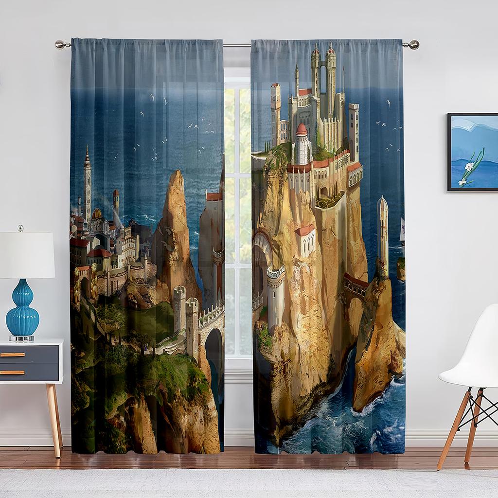 Medieval Castle In Winter Scenery Sheer Curtains for Living Room Bedroom Decor Window Tulle Curtain Transparent Chiffon Curtains