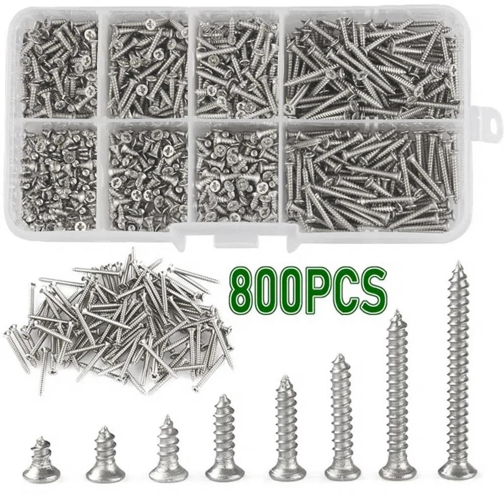 1 Låda Gänga Spik Skruv Set Kryss Platt Huvud M2/M3 Phillips Panhuvud Träskruv Kolstål för Däck/Gipsvägg/Betong/Plåt