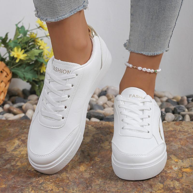 Små vita skor vår och sommar nya snörskor studentskor bekväma löparskor platta stor storlek damskor