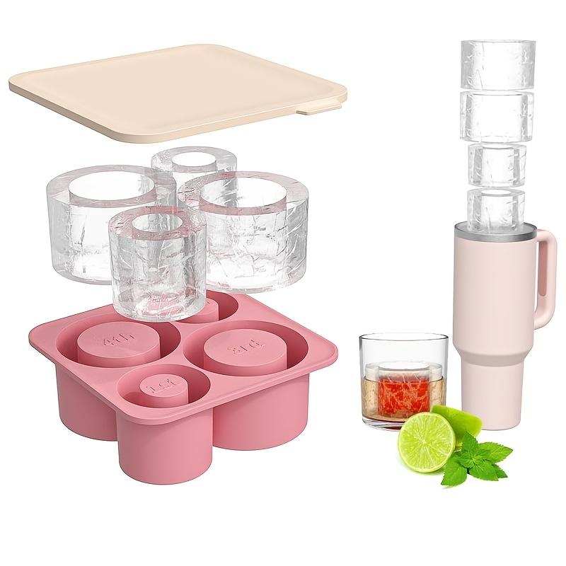 Ice Tray Is Suitable for 20 Ounce Flat bottomed Cups, 4pcs of Silica Gel Hollow Cylindrical Ice Molds, Suitable for Cold Drinks, Coffee