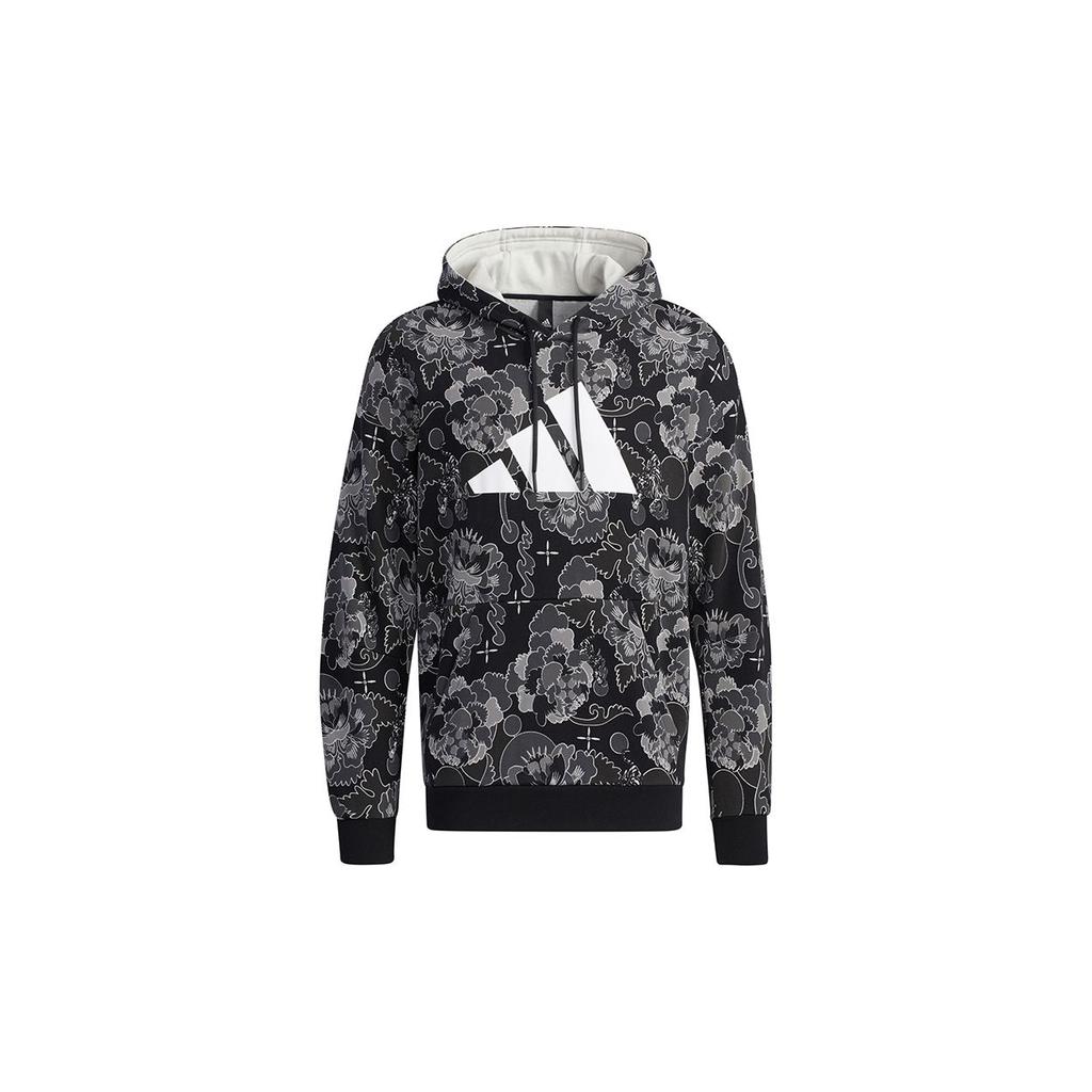 Adidas Aop Hoodie Casual Sport Pullover Men Tops Carbon-Black GT6483
