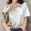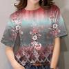 Sommar Rundhals 3D Blomtryck T-shirts Trendiga Casual Kortärmade Dam T-shirts