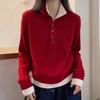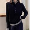 High Quality Knitted Shirt Women Casual Warm Color Blocking Fashion Autumn Winter Tops