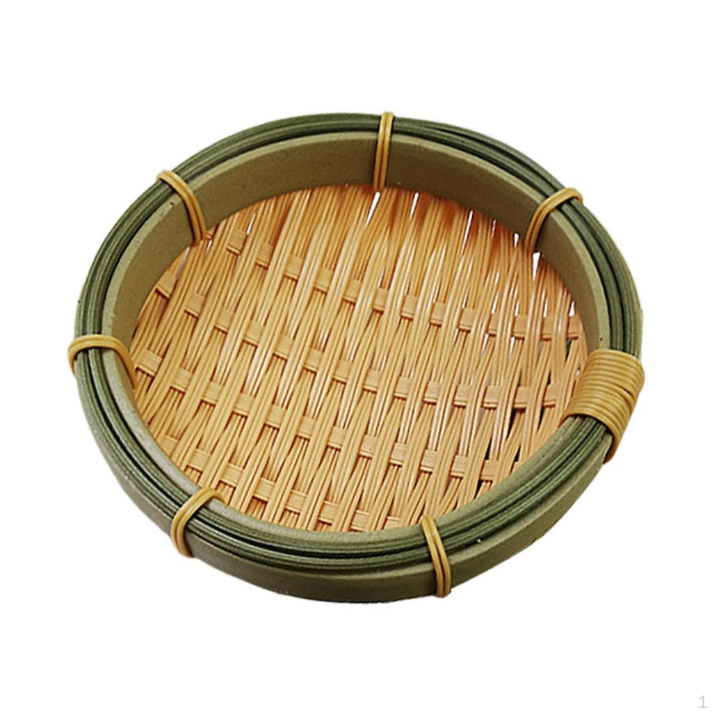 Mångsidig Rund Vävd Korg Serveringsbricka med Durkslag och Avrinningsställ, Idealisk för Fester, Kök,