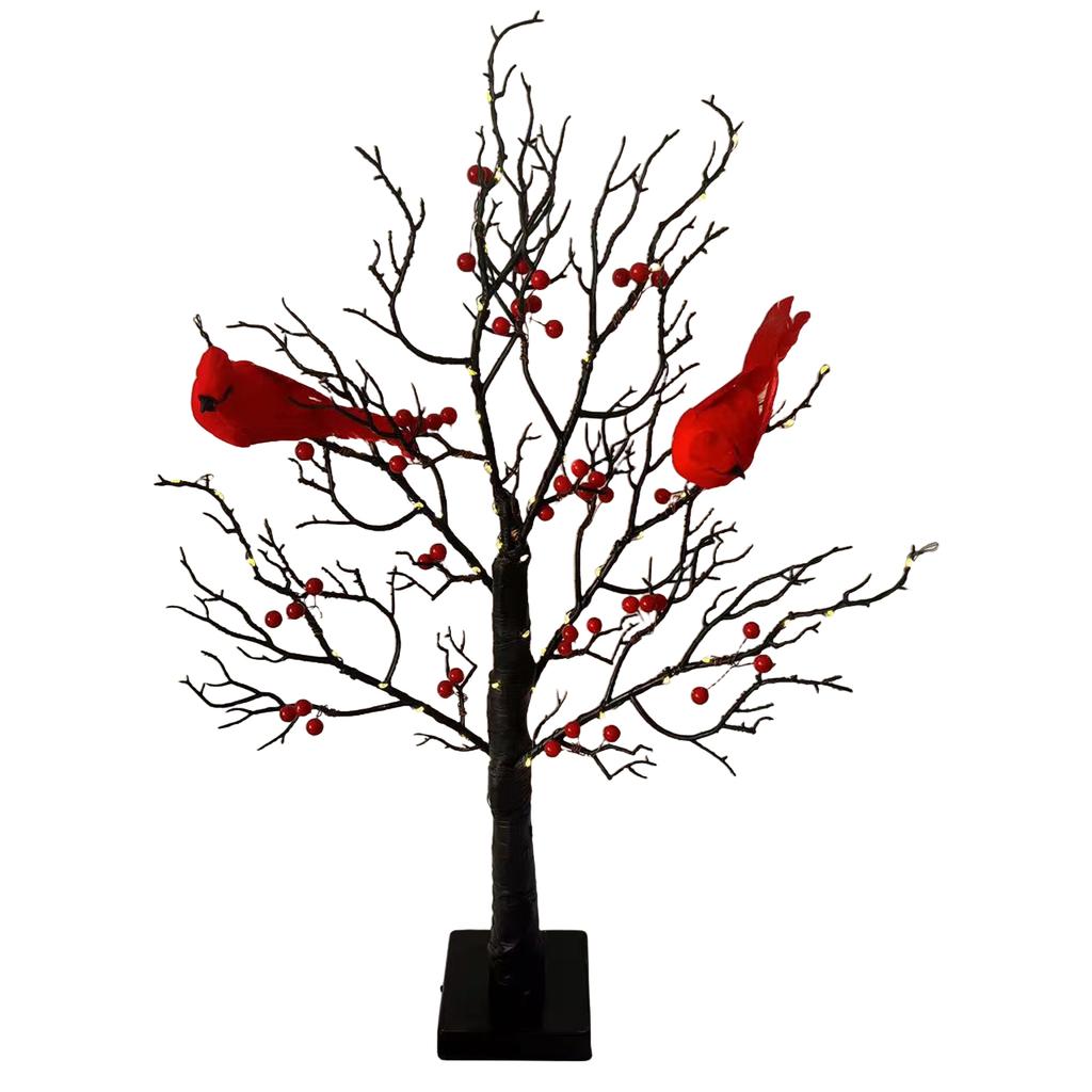 Christmas Cardinal Tree with Lights Light Up Holiday Atmosphere Decor Easy Assembly for Yard Pathway Garden Xmas Party Decoratio