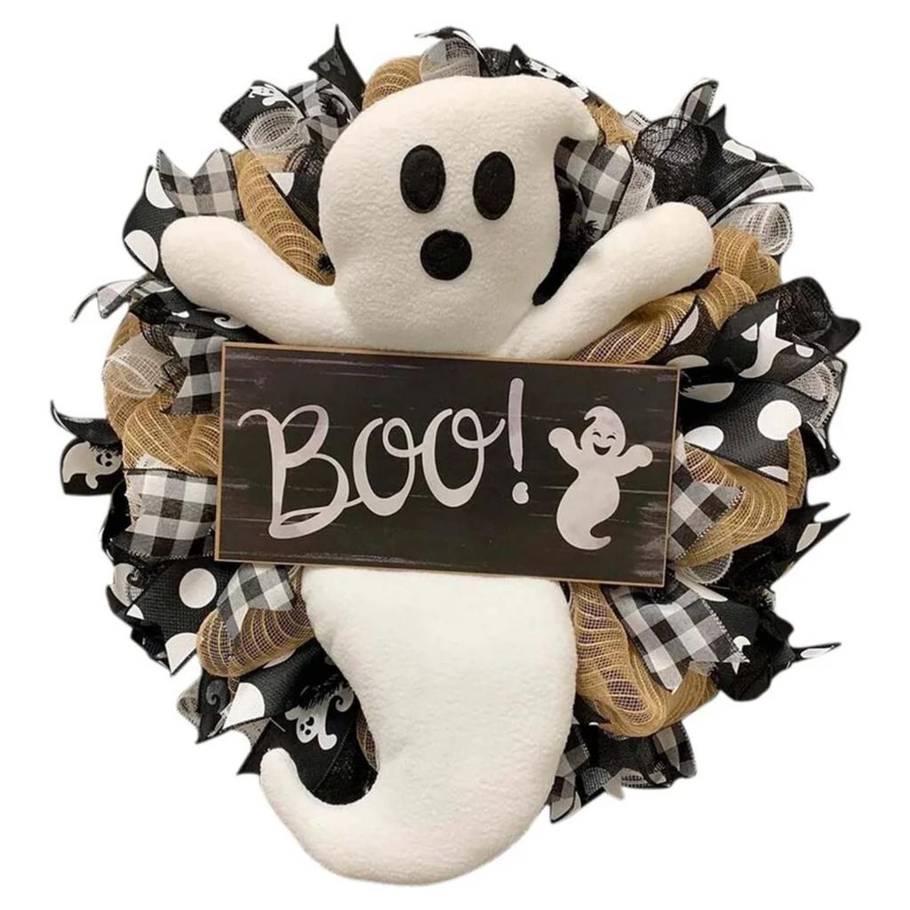 Material: Halloweenkransen är gjord av rotting, plast, sidenblomma, lätt att hänga, använd den för att dekorera ditt hus och göra ditt hus fullt av mystik.