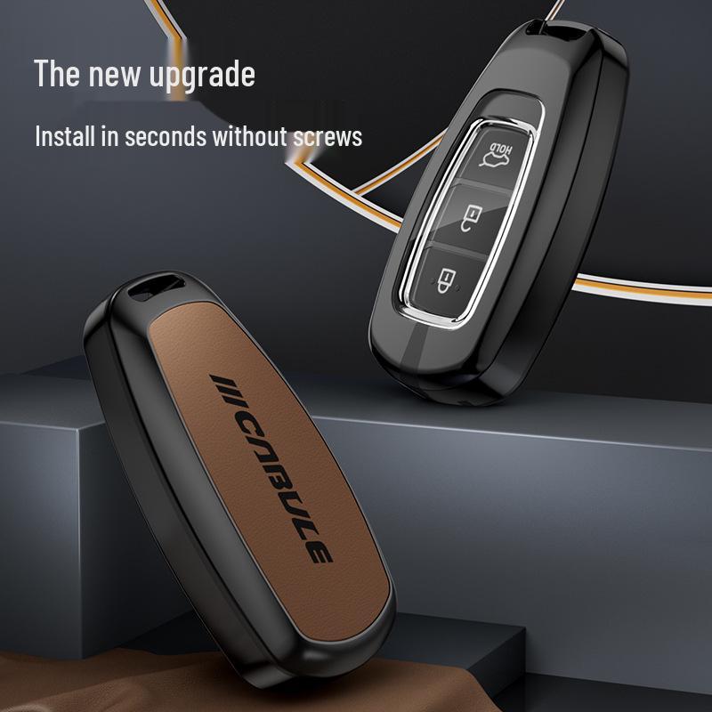 Bilnyckelskydd för Beijing Hyundai Mistra, Elantra, ix35, Festa, ix25 - Metall-läderväska med spänne.
