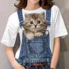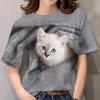 2025 Ny Europeisk och Amerikansk Dam T-shirt Söt Kattmönster 3D-tryck Rundhalsad Kortärmad Bekväm Casual Topp