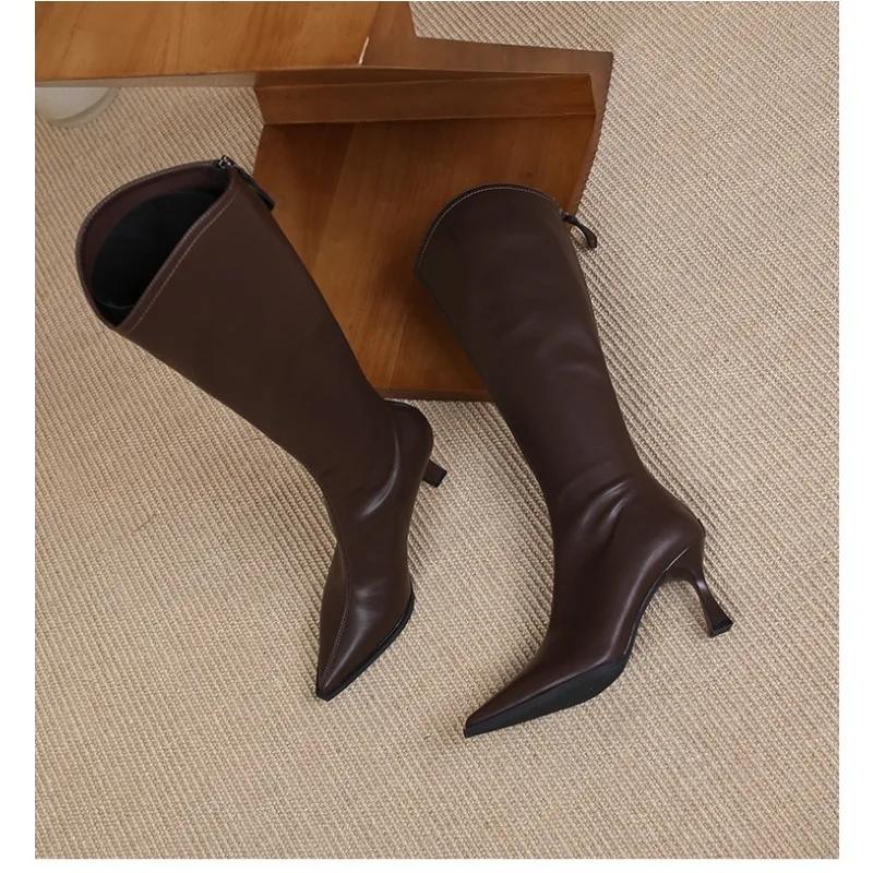 Mode Mode Spetsig Tå Smala Knähöga Stövlar Kvinnor Eleganta Högklackade Skor Street Style Bankett Morderna Långa Botas Mujer