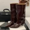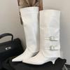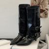 Mode Mode Damstövlar Temperament Spetsig Tå Läderstövlar Eleganta Ben Byxor Skaft Ankelstövletter Bältesspänne Knähöga Stövlar för Kvinnor