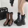 Fashion Comemore Vintage Stövlar med tjock sula och mellanhögt skaft för kvinnor Höst Mjukt läder Western Korta stövletter Kvinnor Stövlar med chunky klack för kvinna