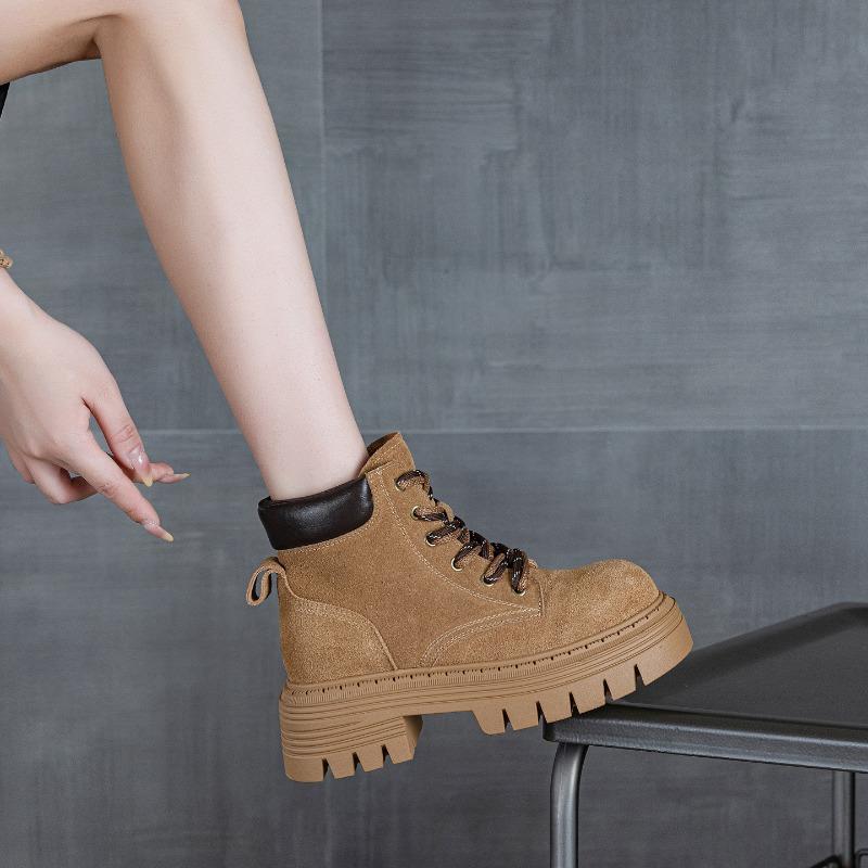 Läder Martin boots höst ny tjock sula hel läder höjning. Cm lätta vardagliga bomullsskor för kvinnor
