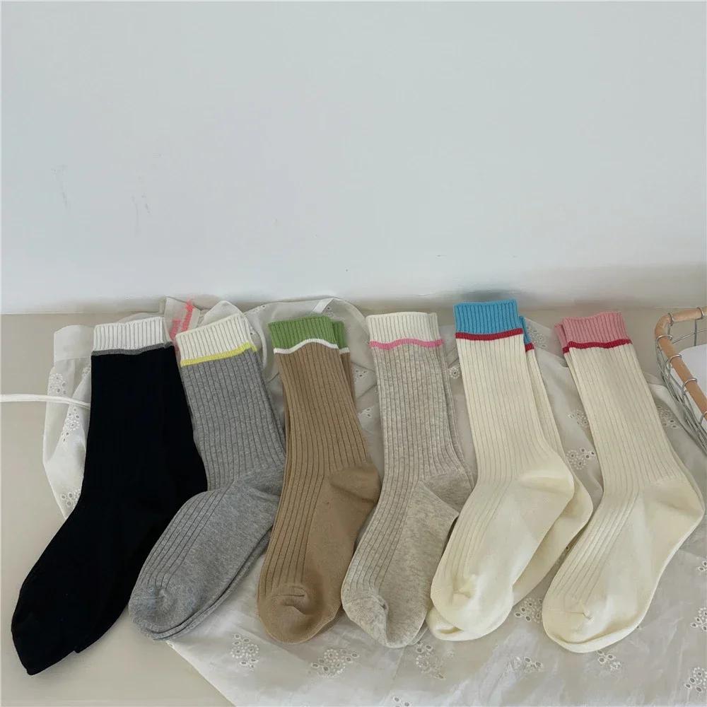 Knitting Cotton Women Socks Korean Fashion Color Matching Elastic Long Socks Casual Fashion Girls Harajuku Streetwear Crew Socks