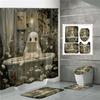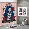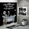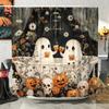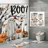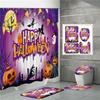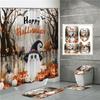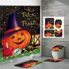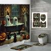 HETT Halloween Spöke Pumpa Dödskalle Duschdraperisett med Halkfria Mattor Toalettlocksskydd och Badrumsmatta Tvättbar Bus eller Godis