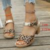 Mode Lätta Leopardmönstrade Sandaler med Tjock Klack Dam Sommar Höga Klackar Platåsandaler Dam Ankelrem Halkfria Strand Sandalias