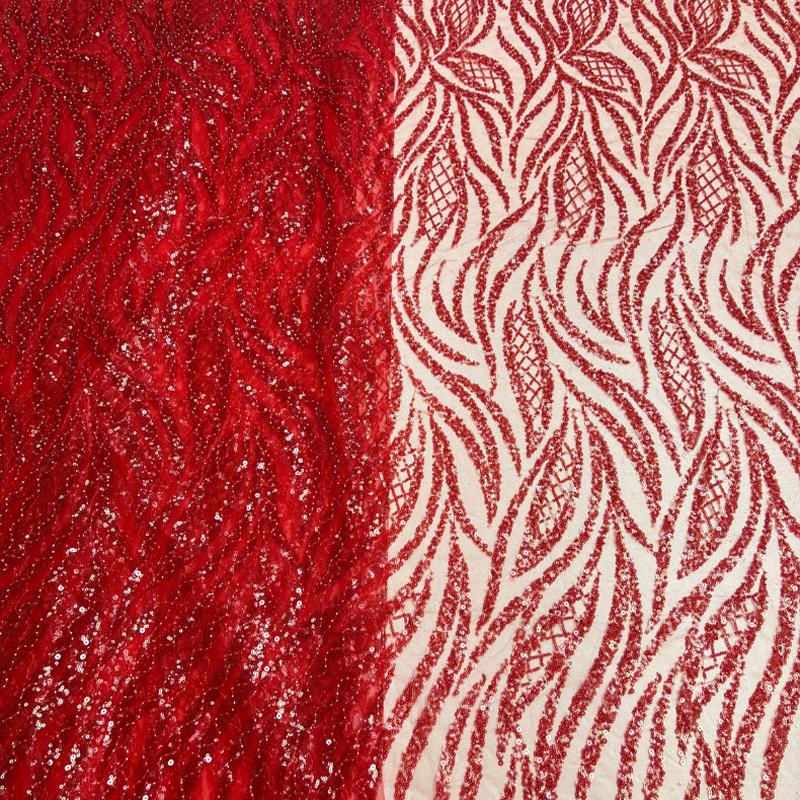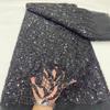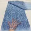 Lyxig Afrikansk Pärlbroderad med Paljetter Spets Tyg Hög Kvalitet Brudgum Nigeriansk Bröllopsklänning Brudbroderi Fransk Tyll Sömnad