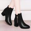 Korta modebomullsstövlar dam höst och vinter nya mjukbottnade Martinstövlar mångsidiga tjock klack mellanhög klack sammet termiska läderstövlar