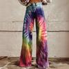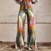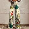 Dammode Lösa Casual Tryck Elastisk Midja Fickor Vida Ben Casual Byxor