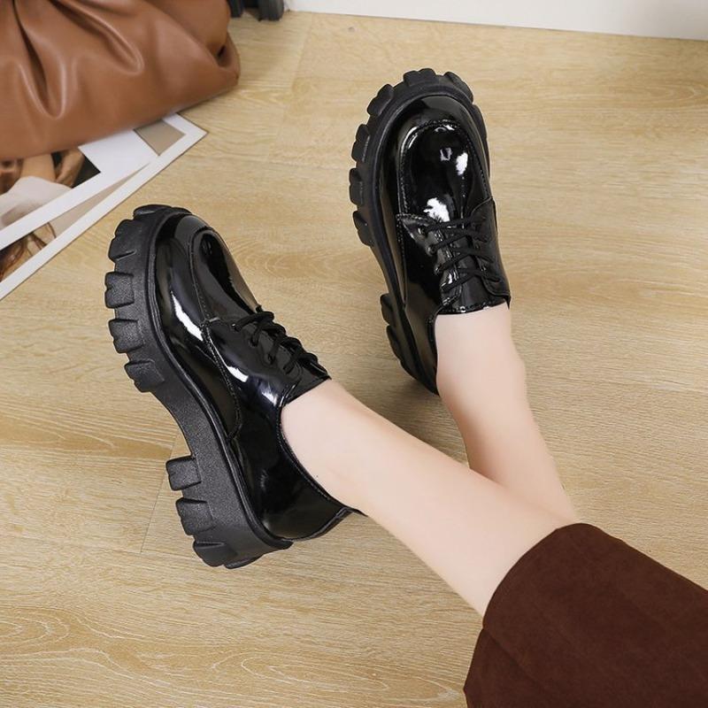 Snörskor små läderskor dam nya vår student retro plattform enkelskor små muffinskor dam