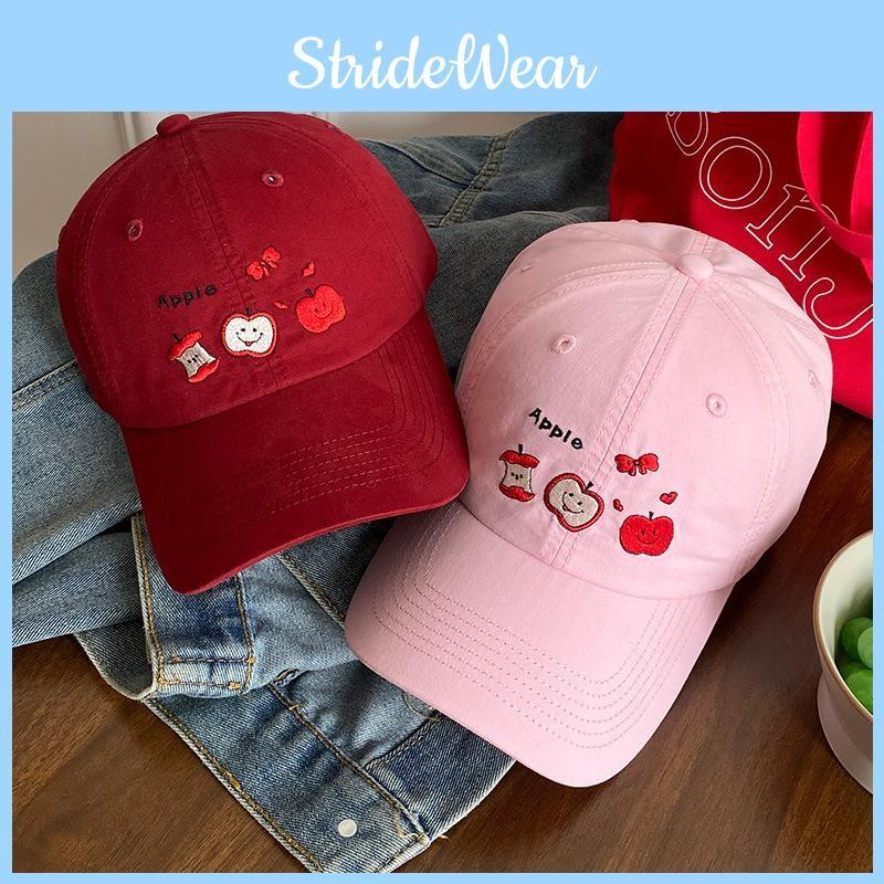 Cute Baseball Red Hat With Apple Embroidery Ideal For Spring Outfits Women For