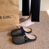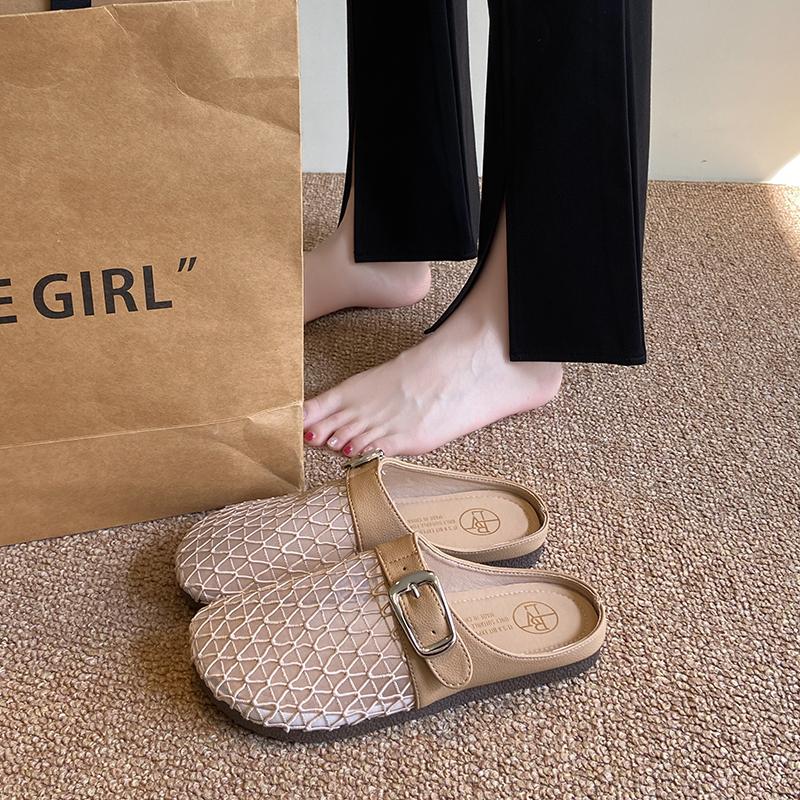 Fashion CRLAYDK Mule for Women Backless Buckle Loafers Slip On Mesh Hollow Out Casual Walking Flat Slides Closed Toe Ladies Slippers