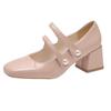 Mode Kvinnor Chunky Klackar Mary Jane Skor Vår Nymode Fyrkantig Tå Dubbla Ankelremmar Pumps Kvinnor Eleganta Läder Högklackade Skor