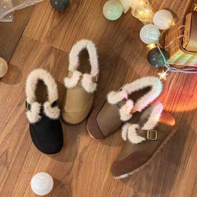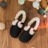 Winter new retro velvet round head flat bottom one pedal warm beanie shoes women's matte comfortable wool cotton shoes