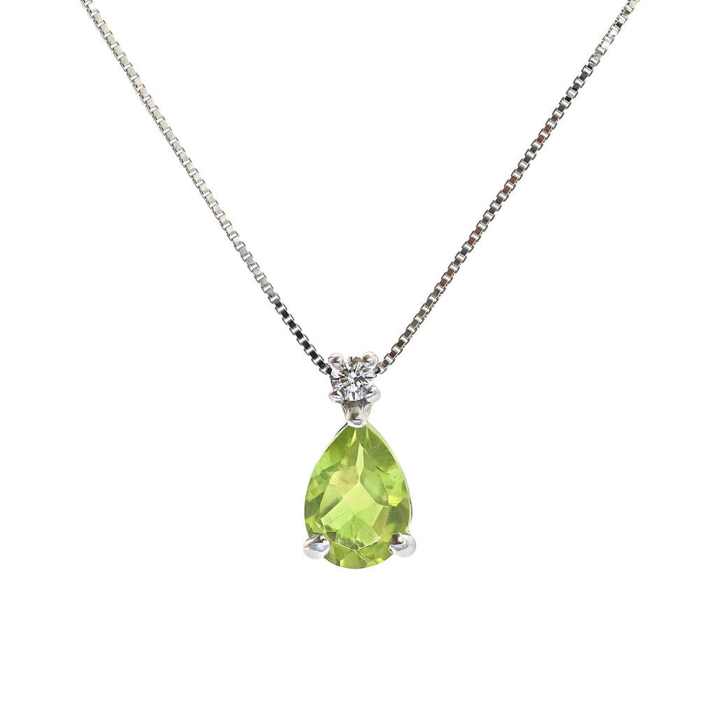 [Metal/Material] Peridot pear-cut, 0.03ct diamond, Metal: K10WG (10K white gold)