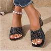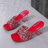 Mode Kristall Lyx Höga Klackar Skor Kvinnor Sandaler Fyrkantig Tå Tofflor Sommar 2025 Sexiga Chunky Strandskor Flip Flops Slides Mujer
