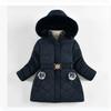 Winter Girls' Mid-length Cotton-padded Jacket, Western-style Heart-shaped Rhombic Pattern Cotton-padded Coat, Fur Collar, Hooded Jacket
