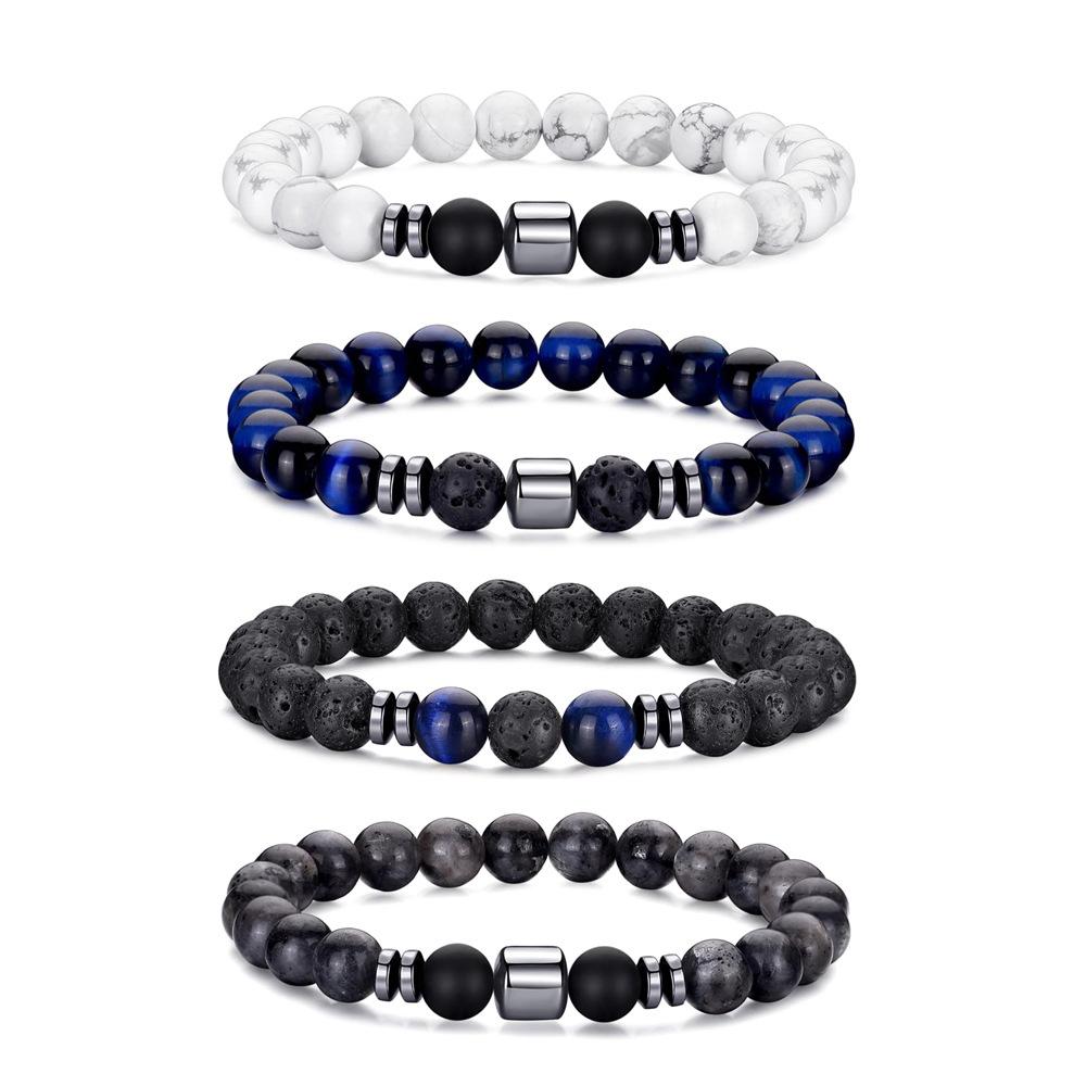 Armbandsset med naturstenspärlor för kvinnor män smycken lapis lazuli natursten lavasten tigeröga pärlarmband för par