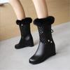 Vinter Dam Snökängor Mode Varma Plysch Mellanvadsstövlar Damer Rund Tå Dragkedja Kilklack Snökängor Svart Vit Storlek 33-43