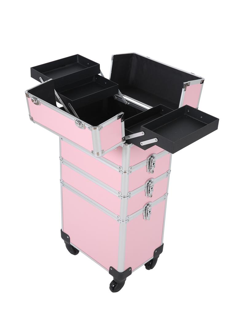 Multifunctional 4-TierProfessional Makeup Case, Foldable Cosmetic Case for Hair Stylists, Beauticians, Nail Tech Students