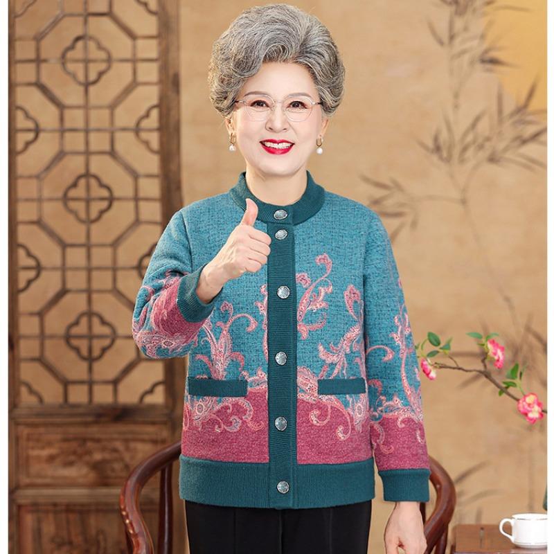 Grandma autumn and winter knitted sweater woman old lady coat old new mother pack fleece thickened cardigan sweater