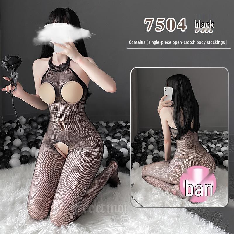 Feimo Lingerie Women's Sheer Halter Low-Cut Open Crotch Mesh Bodysuit 7504